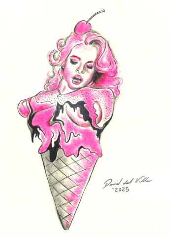 Cherry Fudge - Lisa de Leeuw Ice Cream Cone (Colored Pencil and Ink on Drawing Paper) 8X10